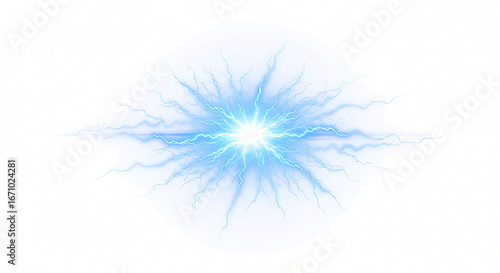 © Arie, Naklejka premium Electric Energy Burst with Intense Blue Lightning Emanating Outward.