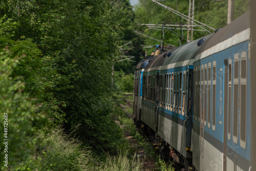 © luzkovyvagon.cz, Naklejka premium Electric engine and blue coach from window