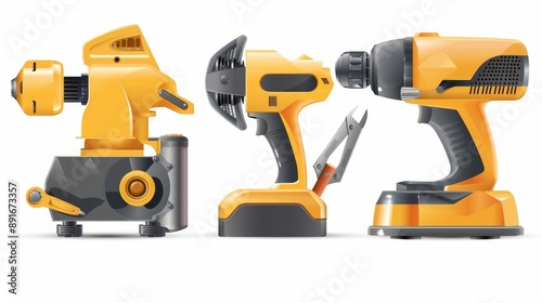 © LofiAnimations, Obraz premium electric grinding machine in different angles on a white background. Tools isolated on white. Photo realistic photo.