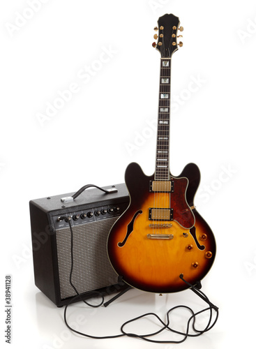 © Michael Flippo, Naklejka premium Electric guitar and amplifier on white background