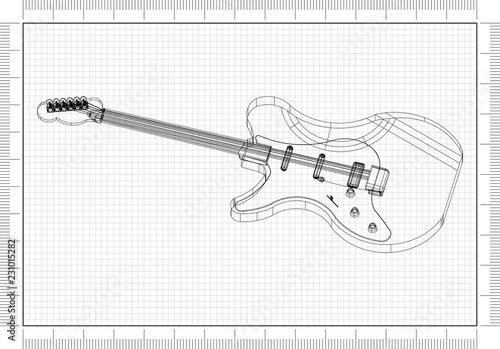 Obraz premium Electric guitar Architect blueprint