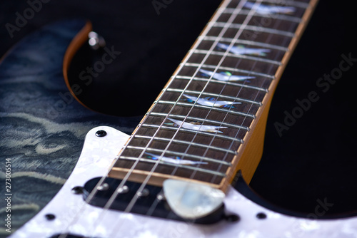 Fototapeta premium Electric guitar close up. Black background.