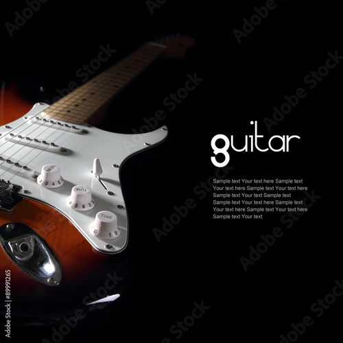 © Zerophoto, Obraz premium Electric guitar on dark background. Removable sample text.