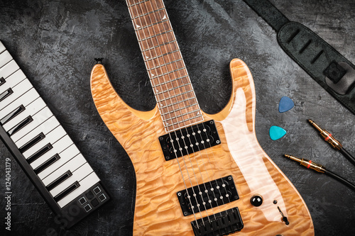 Fototapeta premium Electric guitar on grey background