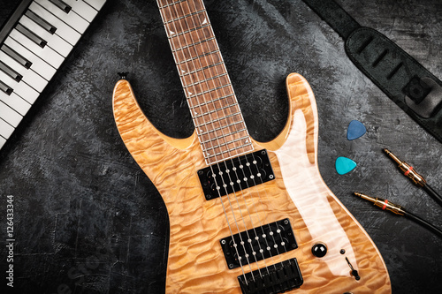 Fototapeta premium Electric guitar on grey background