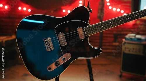 © akhmad, Obraz premium Electric guitar on stand in a music venue