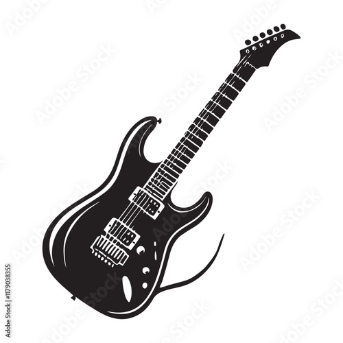 Naklejka premium Electric Guitar Silhouette Vector Illustration, Solid White Background.