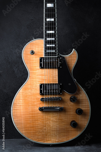 © Banu Sevim, Fototapeta premium Electric guitar with natural pattern isolated on black background.