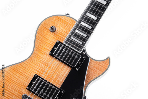 © Banu Sevim, Fototapeta premium Electric guitar with natural pattern isolated on white background.