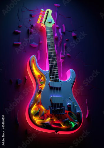 Obraz premium Electric guitar with neon light in cyberpunk style by Generative AI