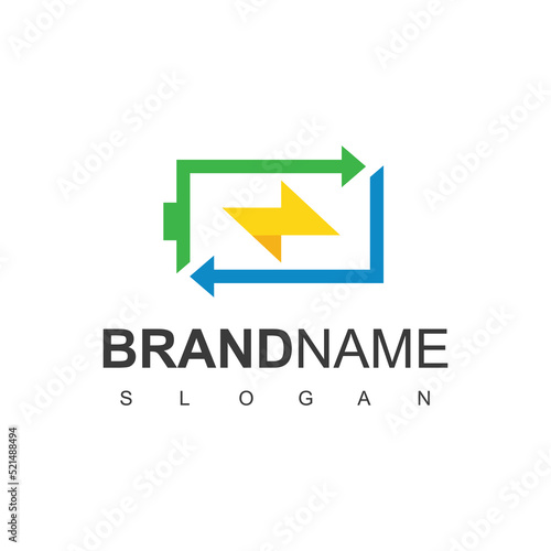 © Adiyatma, Fototapeta premium Electric Logo Green Energy Concept using Battery And Leaf Icon