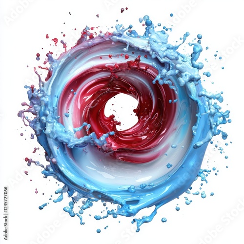 Fototapeta premium Electric maroon and icy blue paint burst forming a spiral, isolated on white
