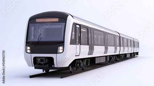 © Anousone, Naklejka premium Electric multiple unit (EMU) front car, smooth curves, pure white backdrop, professional studio shot