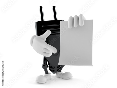 © Talaj, Obraz premium Electric plug character holding blank sheet of paper