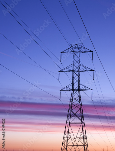 © Lightvision, Fototapeta premium Electric power transmission station lines at Sunset