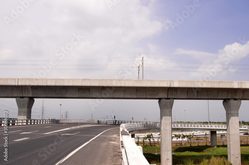 © suwanb, Obraz premium Electric rail way cross bridge at Bangkok, Thailand.