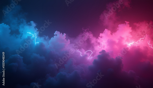 © Ajronujen, Obraz premium Electric smoke clouds in vibrant colors creating a surreal atmosphere