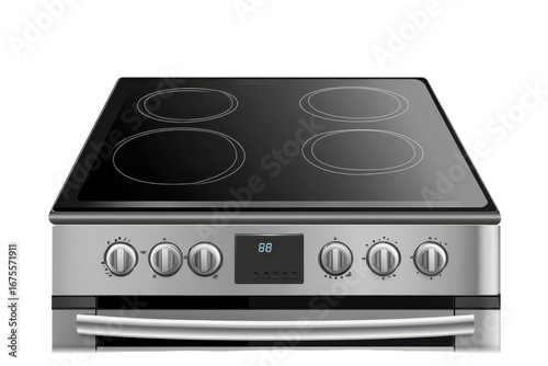 © Pavel, Obraz premium Electric stove featuring a smooth glass top with four burners and a digital display for precise temperature control, designed for modern kitchens