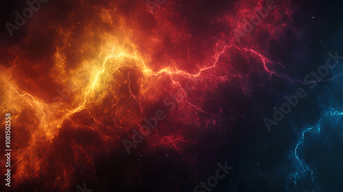 Fototapeta premium electric thunder lightning bolts against dark background dynamic natural...