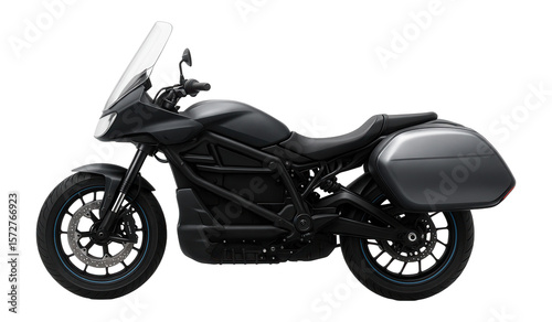 Obraz premium Electric touring motorcycle with large windscreen and integrated saddlebags