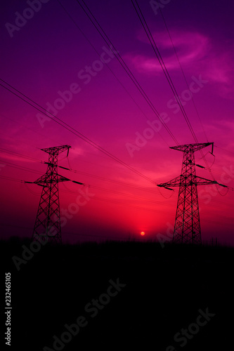 © zhang yongxin, Fototapeta premium electric tower in the evening sky