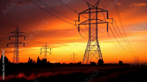© Cristina, Fototapeta premium Electric tower, silhouette at sunset