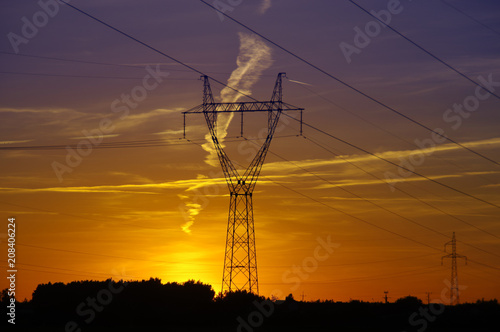 © Skórzewiak, Fototapeta premium Electric towers on sunset