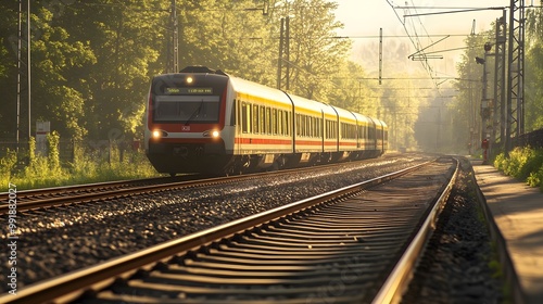 © Bijali, Naklejka premium Electric train captured against vibrant sunset backdrop image
