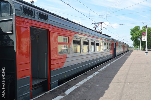 © vodolej, Fototapeta premium Electric train there is at the desert platform a