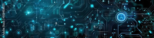 © Dekastro, Fototapeta premium electrical engineering abstract banner design with dark blue background