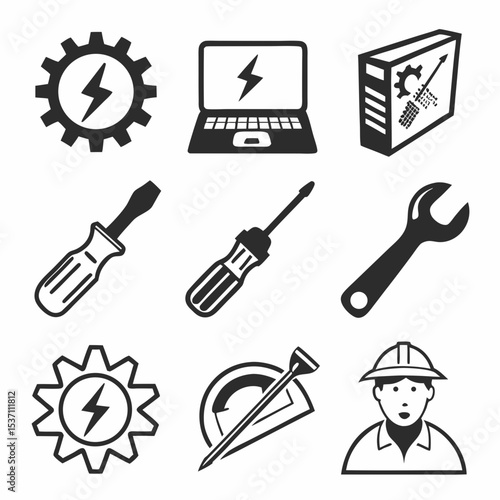 Obraz premium Electrical engineering tools and technician icon set