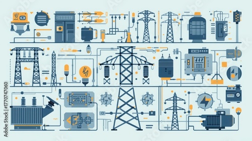 © Abuzar, Obraz premium Electrical grid schematic showcasing power generation and distribution systems