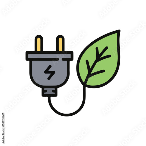 Obraz premium Electrical Plug with Leaf Icon – Flat Vector Energy alternative Illustration