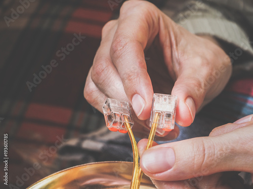 © sablinstanislav, Fototapeta premium Electrician connecting wires