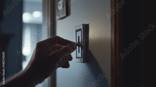 © keshia, Fototapeta premium Electrician rewiring light switch in home. Featuring precision and expertise
