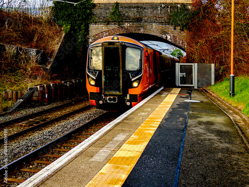 Fototapeta premium Electrified passenger suburban commuter railway ENGLAND UK