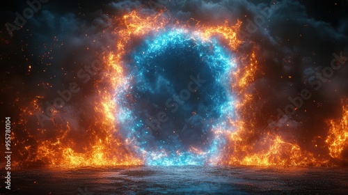 Fototapeta premium electrifying 3d rendered frames pulsing with blue lightning rectangular and...