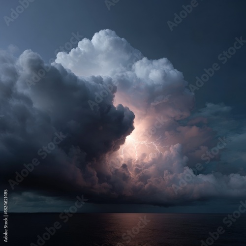 © Andrii Zastrozhnov, Obraz premium Electrifying lightning storm illuminates ocean at night