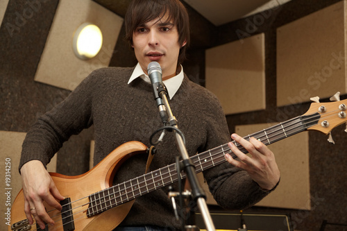 Obraz premium electro guitar player playing and singing. practice.
