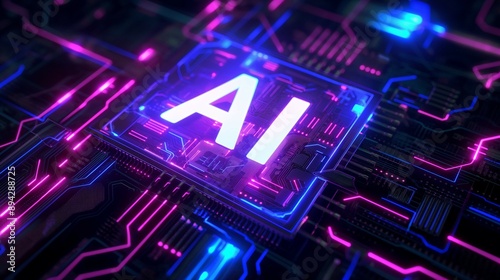 © woojooo, Obraz premium Electronic circuit blue orange gradient graphic design