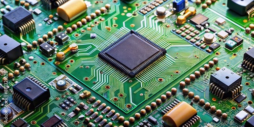 Obraz premium Electronic circuit board with various components and pathways, technology,...