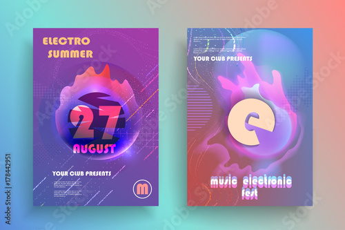 © mechkalo, Naklejka premium Electronic music fest poster. Club party flyer. Abstract space background.