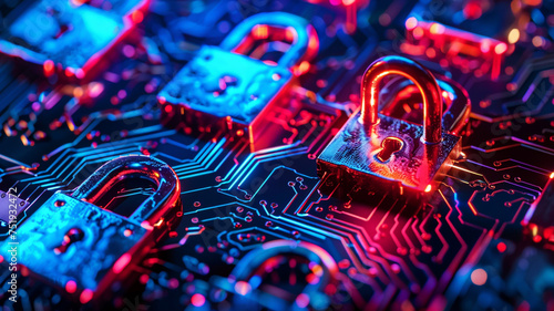 Fototapeta premium Electronic security lock Digital padlock for computing system.