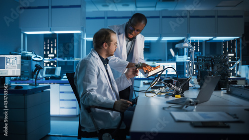 Obraz premium Electronics Research, Development Facility: Engineer Project Manager Consults...
