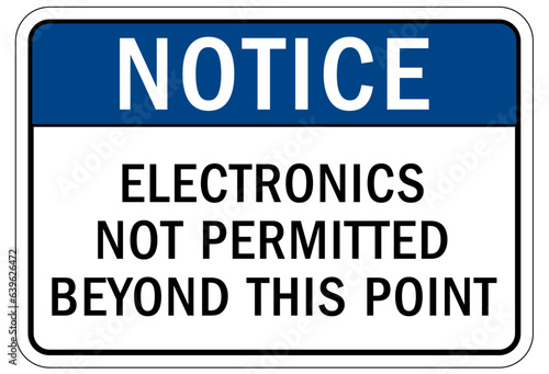 Fototapeta premium Electrostatic warning sign and label electronics not permitted beyond this point