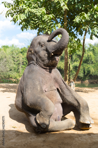 © Nomad_Soul, Naklejka premium Elefant sitting outdoor vertical shot