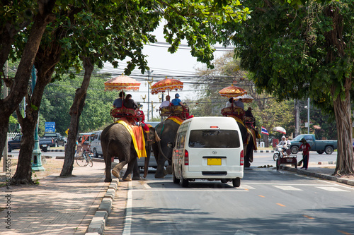 Fototapeta premium Elefanten im Strassenverkehr
