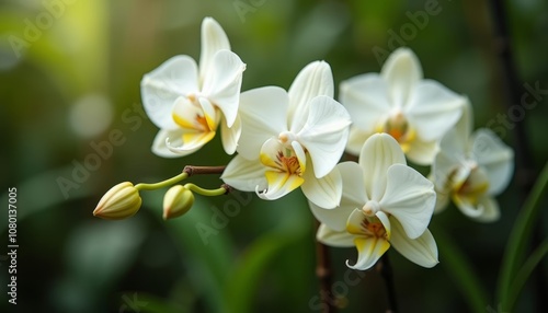 © SwathiFX, Fototapeta premium Elegance in bloom A cluster of pristine white orchids