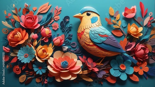 © Metavector , Fototapeta premium Elegance in 3D, A Captivating Abstract Background Illustration of Birds and Flowers