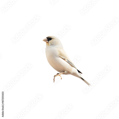 Fototapeta premium elegance in stillness a solitary bird perched isolated on white background,...